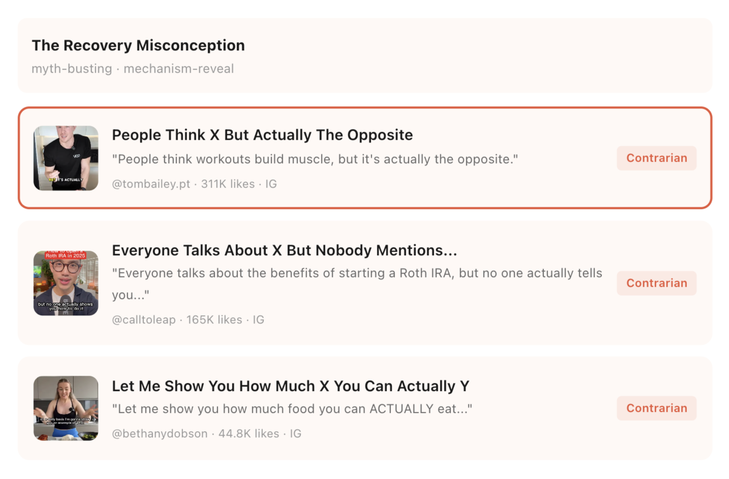 Saved hooks, reused patterns, and repeatable short-form systems instead of blank-page prompting.