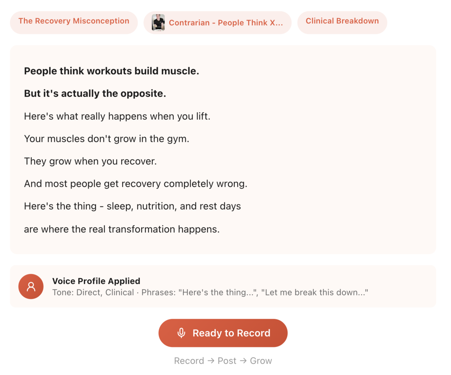 Turn podcasts, coaching calls, and long-form videos into scripts that already fit the feed.